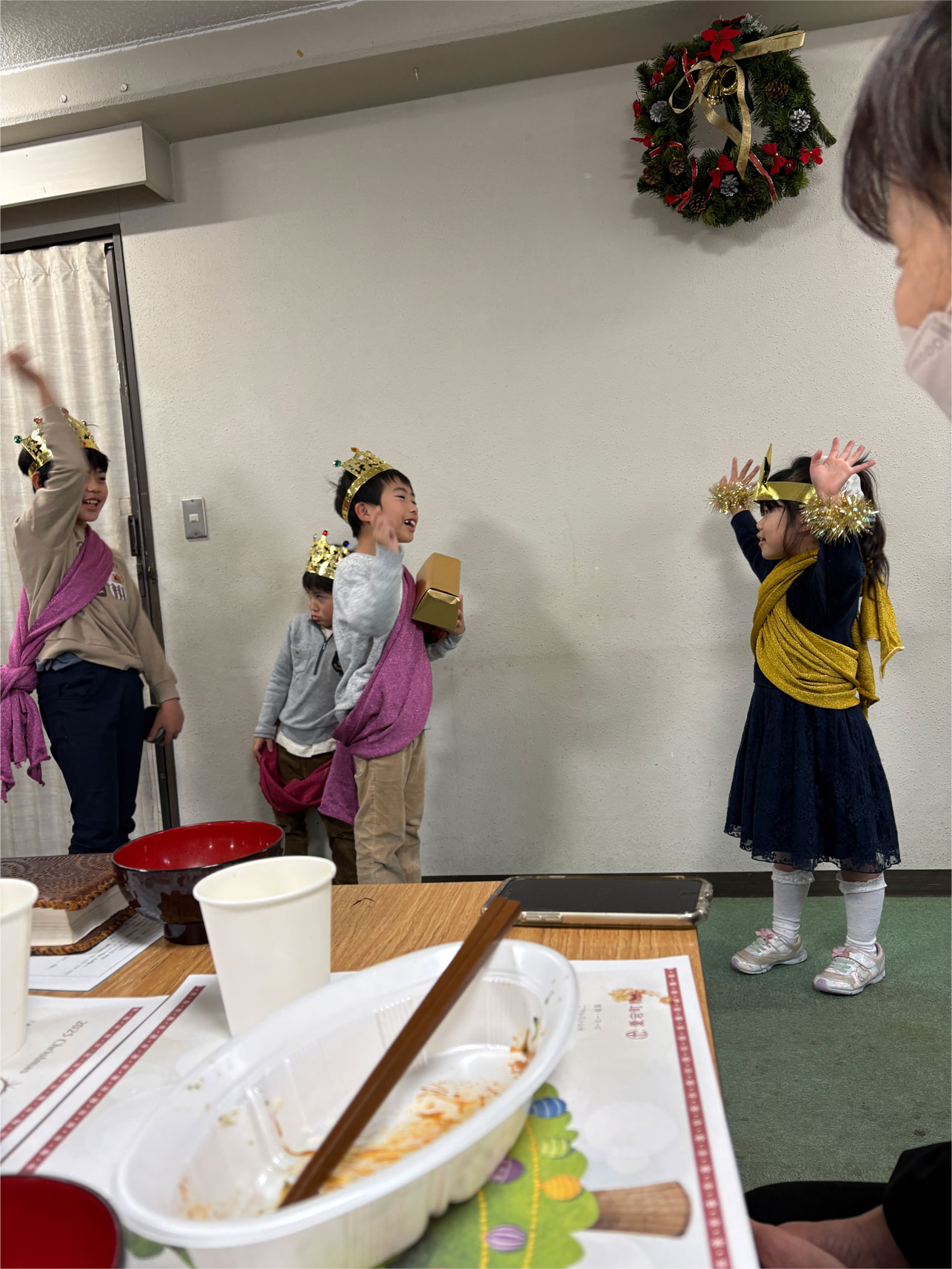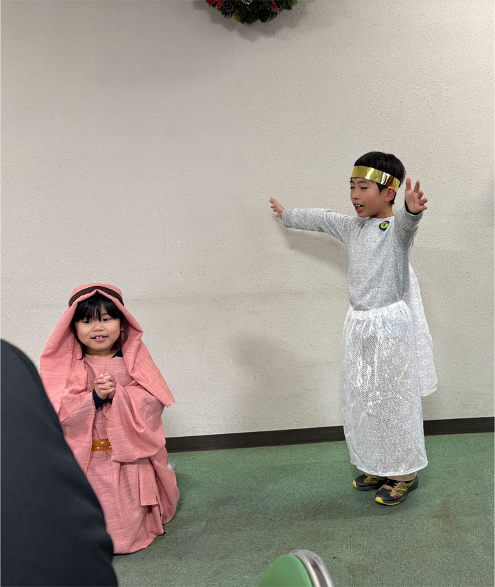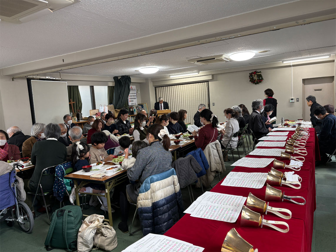 教会学校のクリスマスページェント、ハンドベル演奏、
